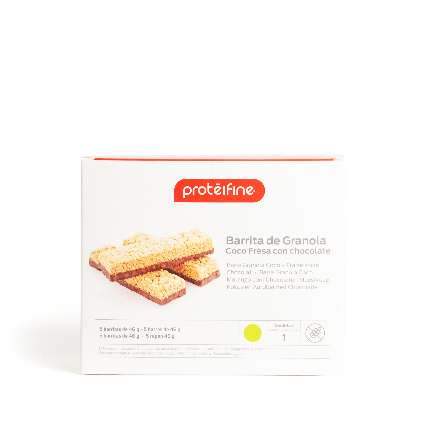 Découvrez notre barre croquante granola saveur fraise et noix de coco avec son socle en chocolat noir. Une source de vitamine E pour une alimentation équilibrée.